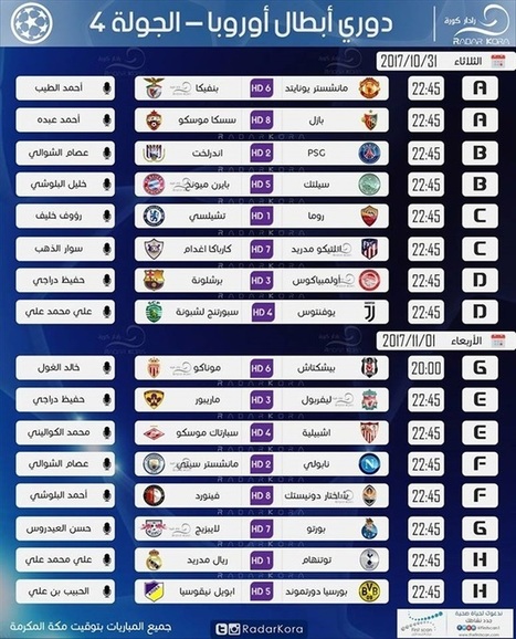جدول المباريات جدول معلقي مباريات دوري ابطال اوروبا Facebook